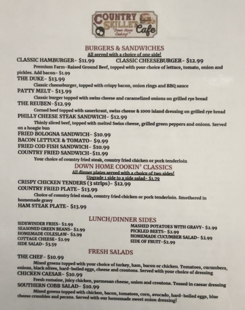Country Skillet Cafe Menu